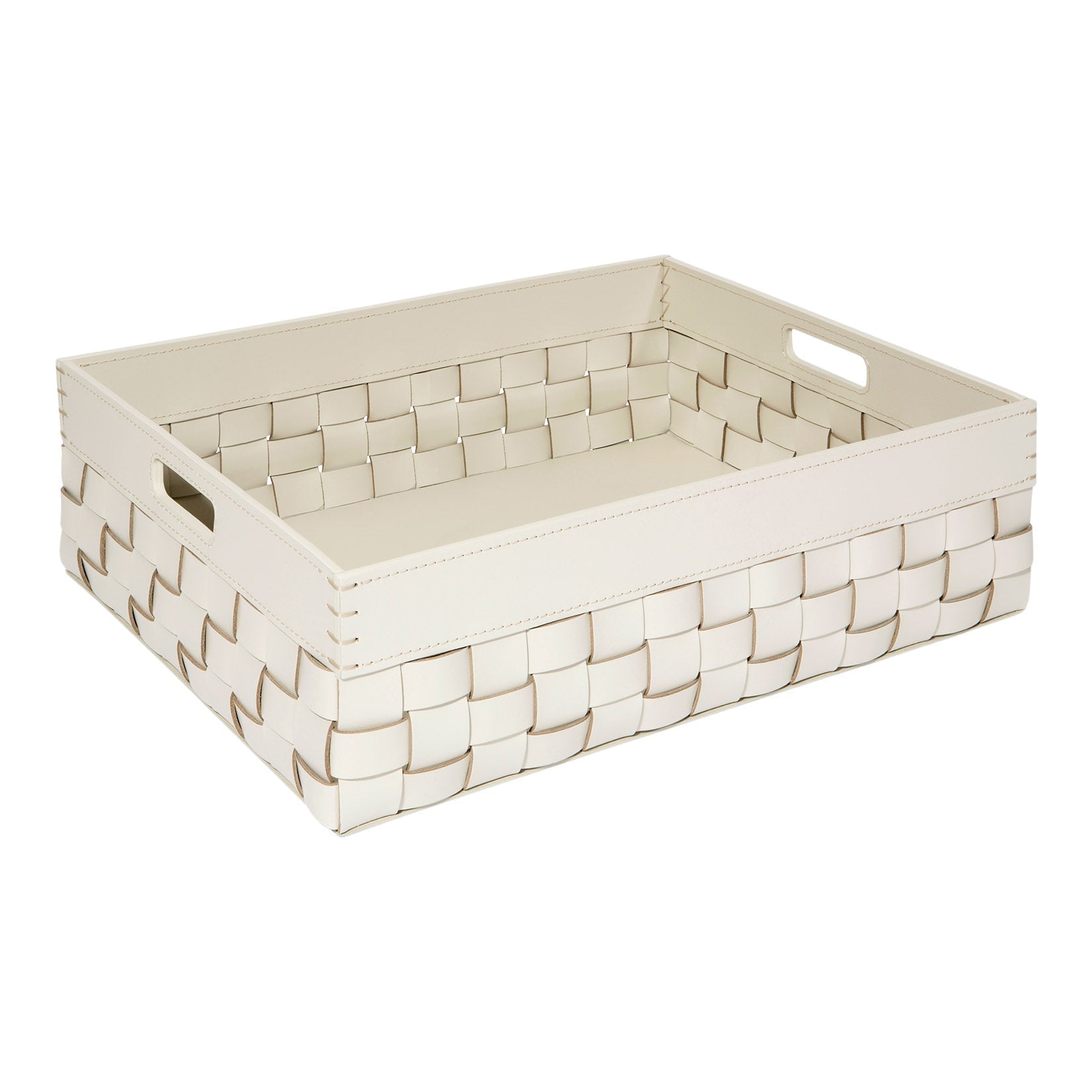 This handwoven ivory leather basket pays tribute to centuries of Italian artistry. The elegant woven pattern and cutout handles add to the basket's elevated design. Topstitching subtly accentuates the sumptuousness of the leather, which has been specially treated so that it can be used with care outdoors.