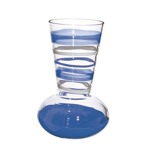"Tronconsfera" translates to "truncated sphere," and this crystal vase is indeed a sphere with an almost imperceptibly flattened bottom, topped with a truncated cone. Mouth-blown by Murano artisans, the vase is hand-finished with painterly blue and white bands that accentuate the crystal's sparkling clarity.