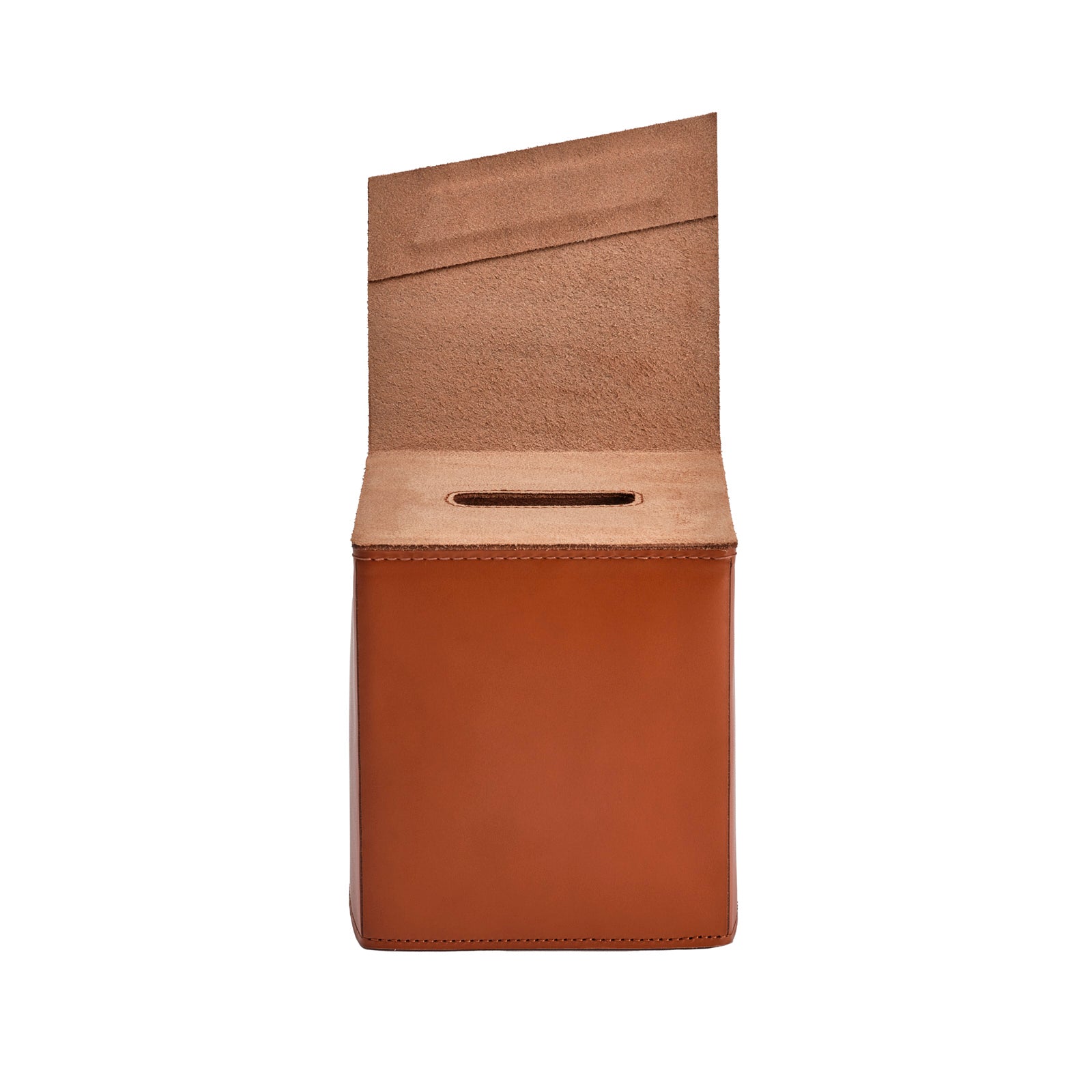 The sumptuous saddle leather is not the only thing distinguishing this square tissue holder. There's also the foldable top flap that serves as a lid, keeping the tissues hidden but easily accessible. A collaboration with renowned designer Piet Boon, the tissue holder shows off the luxuriousness and pliability of the Italian vegetable-tanned leather.