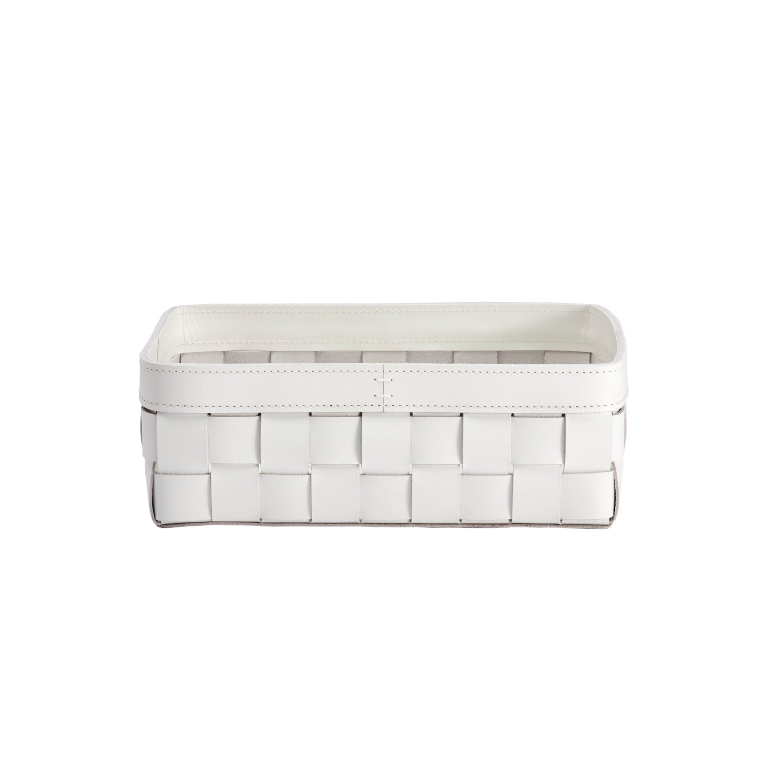 Saddle leather is prized for its durability and thickness, but as this woven basket shows, it can also be supple and smooth. Because the water-resistant Italian leather is vegetable-tanned, it boasts a luxurious depth of color. Whether you use the basket to hold hand towels in a powder room or mail atop an entry table, it will bring organic texture and artisanal refinement to its surroundings.