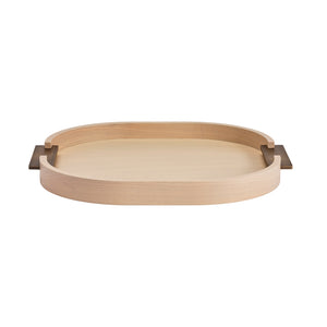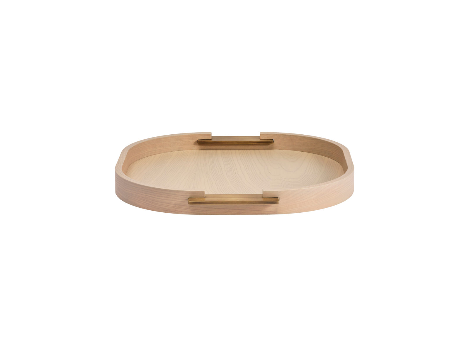 Atop a nightstand, a barcart, or a coffee table, this tray will bring a grace note of undeniable sophistication. The tray is crafted in Italy of ashwood honed to accentuate its fine grain. Complementing the tray's rounded corners are minimalist rectangular handles given a brushed brass finish.