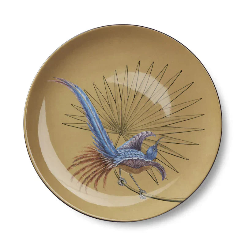 Color comes to life on the Birds of Paradise dinner plate series by Laboratorio Paravinci. Crafted in Italy of the finest white earthenware, each plate features a different hand-painted bird perched delicately on a palm frond, as if ready to take flight. Mix and match different color plates and birds to transform your table into a tropical scene.
