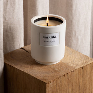 Woody notes of cedar, birch, and guaiac mingle with cinnamon leaf, oakmoss, and patchouli to create this candle's sensuous, slightly mysterious fragrance. Hand-poured in the UK of all-natural wax, the candle is housed in a handcrafted ceramic vessel with a chic bisque finish. Each candle burns for approximately 60 hours.