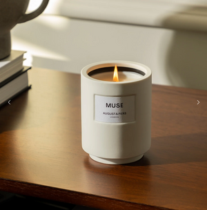 This generously sized candle has an equally generous burn time of approximately 136 hours. Hand-poured in the UK of all-natural wax, the three-wick candle is housed in a handcrafted ceramic vessel and imbued with a fragrance that's equal parts comforting and spirited. Citric top notes of lemon and bergamot give way to floral geranium and woody labdanum, then mellow vanilla, warm benzoin, and earthy musk. The candle comes with complementary August & Piers matches.